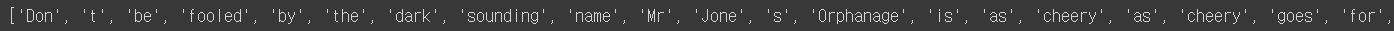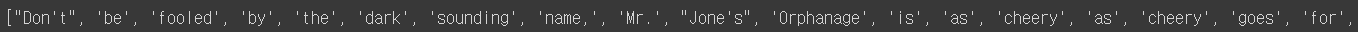 tokenizer=RegexpTokenizer("\s+", gaps=True) # gaps=true는 해당 정규 표현식을 토큰으로 나누기 위한 기준으로 사용한다는 의미