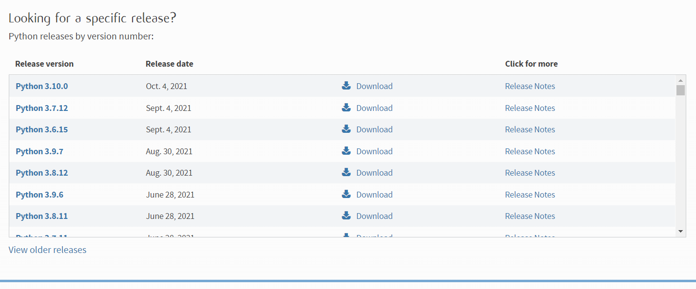 현재 21년 10월기준 릴리즈는 3.10.0까지 공식 배포되어 있네요.