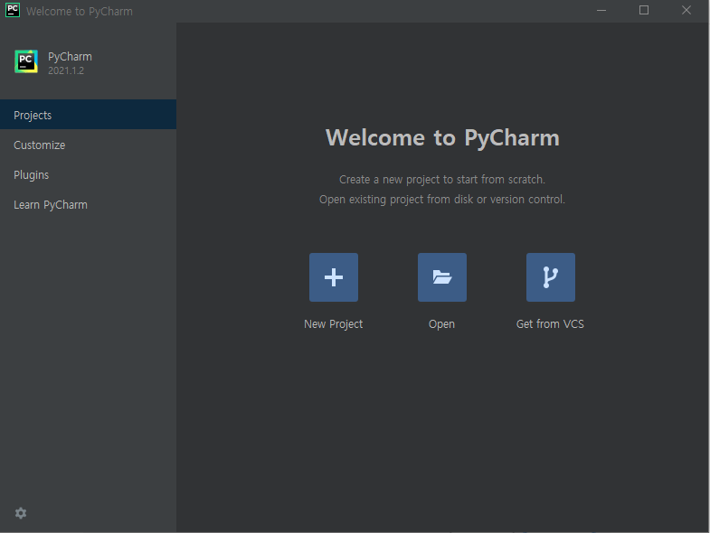 이제 새로운 프로젝트를 생성하여 파이썬을 동작시켜보겠습니다. New Project 클릭