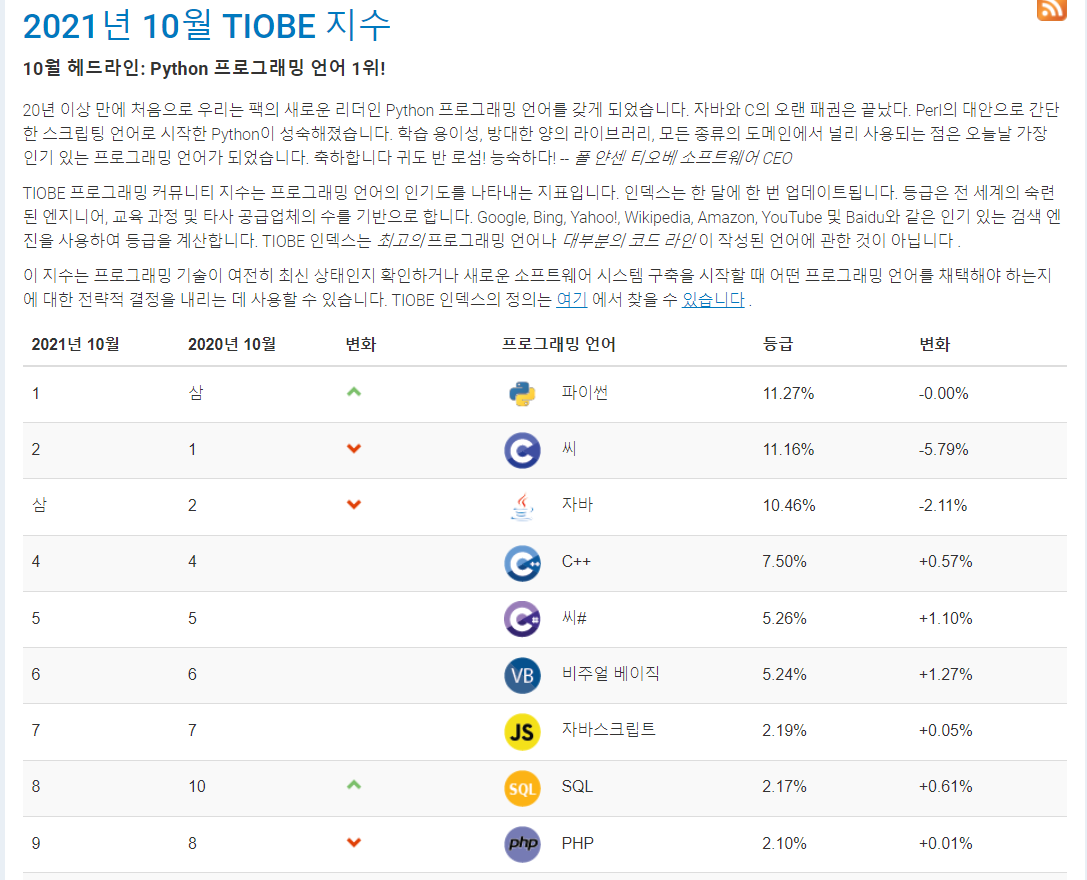 2021년 가장 Hot한 언어는 뭘까요?